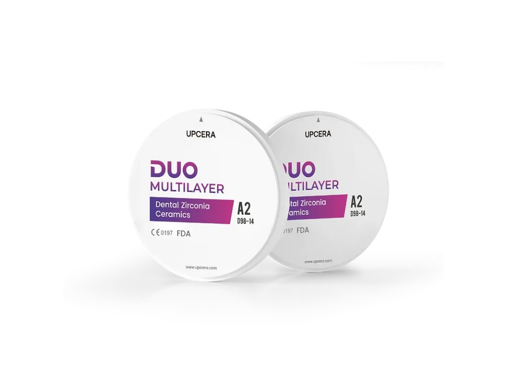 UPCERA DUO představuje moderní zirkonový materiál navržený pro dokonalou rovnováhu mezi pevností, estetikou a efektivitou. Název DUO symbolizuje spojení dvou klíčových vlastností, které jsou dnes v protetické stomatologii zásadní – vysoké mechanické odolnosti a přirozeného vzhledu.